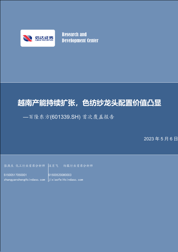 【信达证券】【20230506】百隆东方首次覆盖报告:越南产能持续扩张,色纺纱龙头配置价值凸显-26页