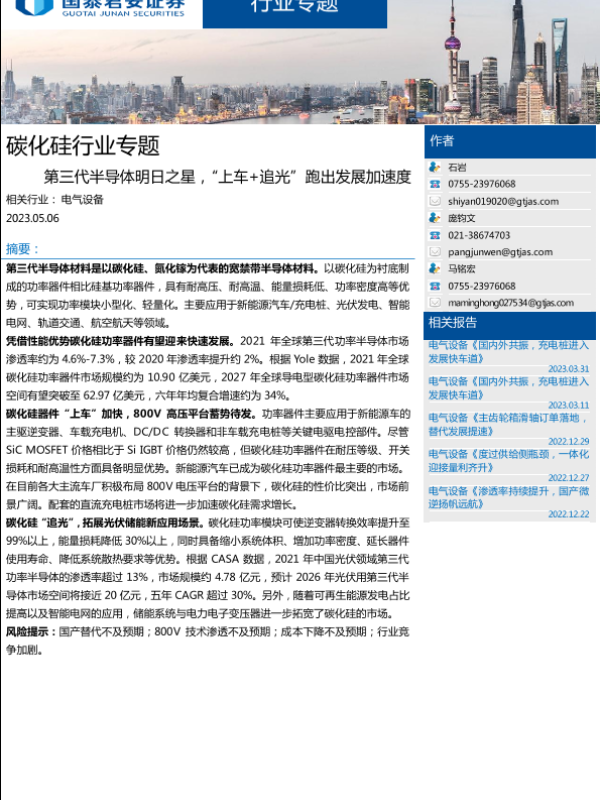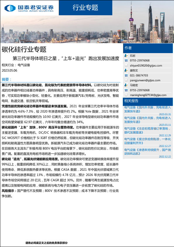 【国泰君安证券】【20230506】碳化硅行业专题:第三代半导体明日之星,“上车+追光”跑出发展加速度-20页