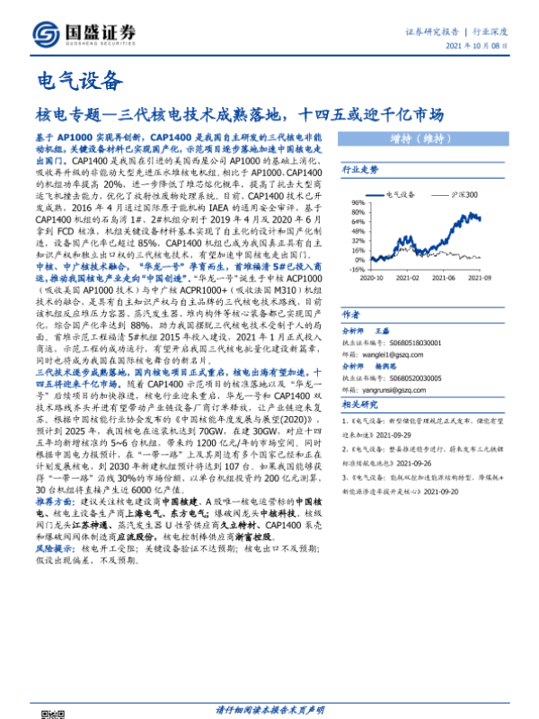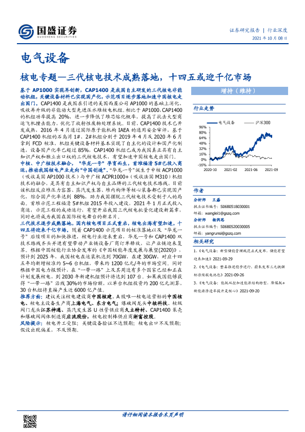 【国盛证券】【20211008】电气设备行业核电专题:三代核电技术成熟落地,十四五或迎千亿市场-36页