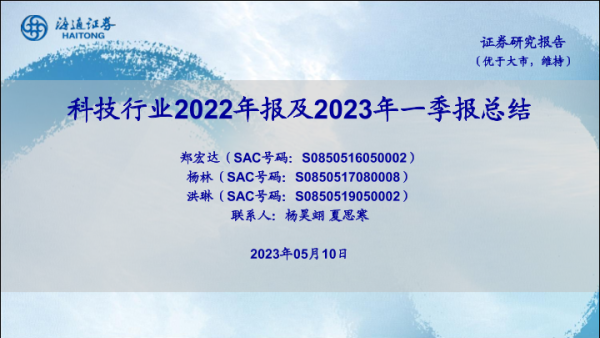 【海通证券】【20230510】科技行业2022年报及2023年一季报总结-28页