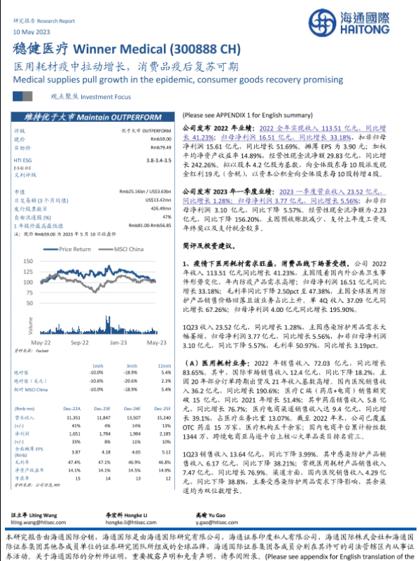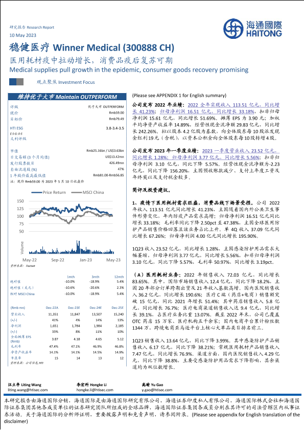【海通国际】【20230510】稳健医疗(300888)医用耗材疫中拉动增长,消费品疫后复苏可期-16页