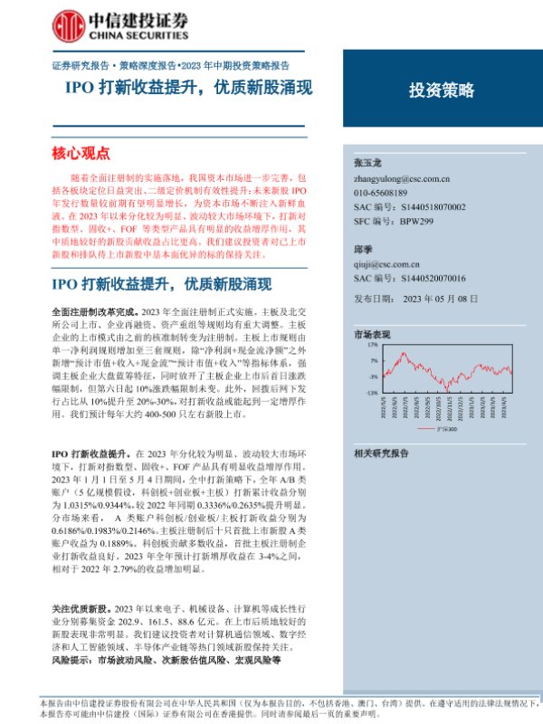 【中信建投证券】【20230508】策略深度报告·2023年中期投资策略报告:IPO打新收益提升,优质新股涌现-35页