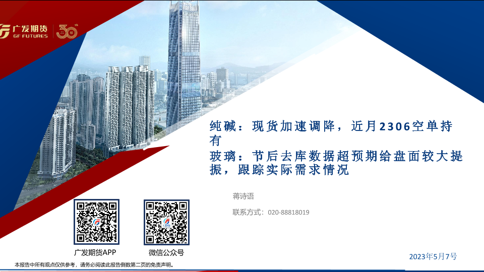 【广发期货】【20230507】纯碱,现货加速调降,近月2306空单持有,玻璃,节后去库数据超预期给盘面较大提振,跟踪实际需求情况-41页
