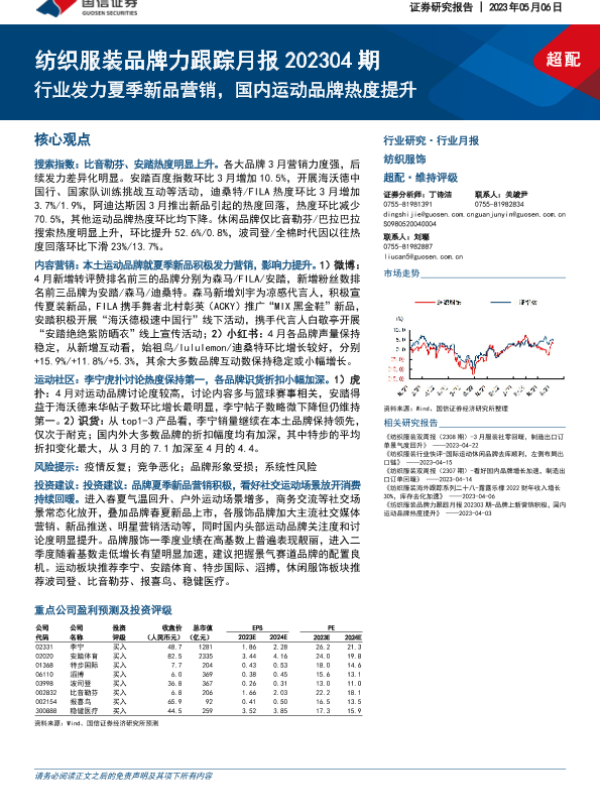 【国信证券】【20230506】纺织服装行业品牌力跟踪月报202304期:行业发力夏季新品营销,国内运动品牌热度提升-24页