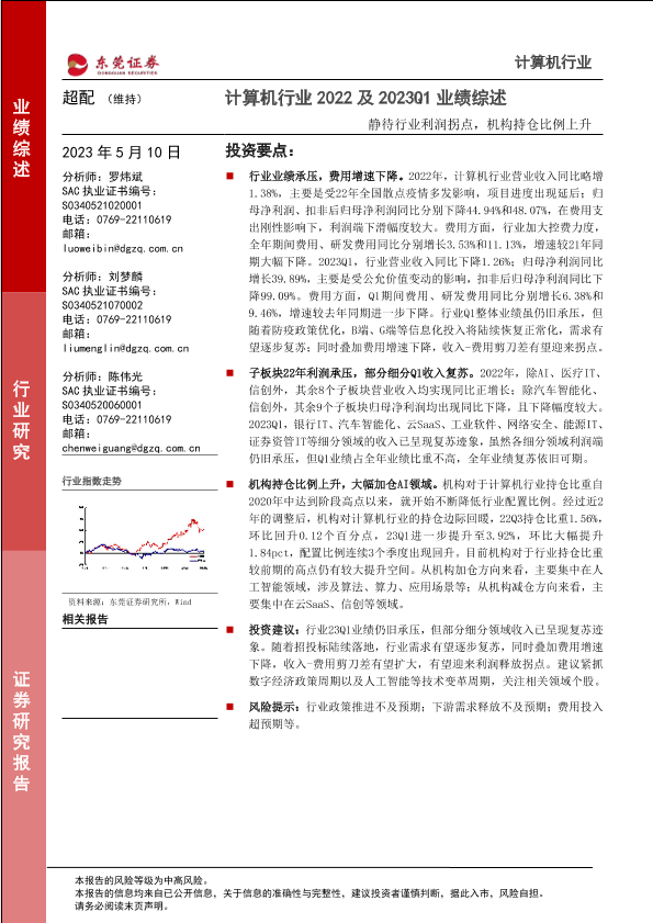 【东莞证券】【20230510】计算机行业2022及2023Q1业绩综述:静待行业利润拐点,机构持仓比例上升-17页