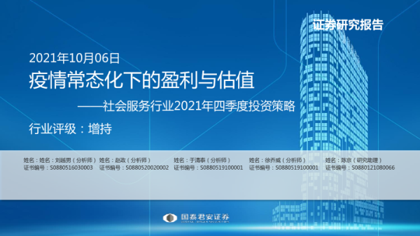 【国泰君安证券】【20211006】社会服务行业2021年四季度投资策略:疫情常态化下的盈利与估值-60页