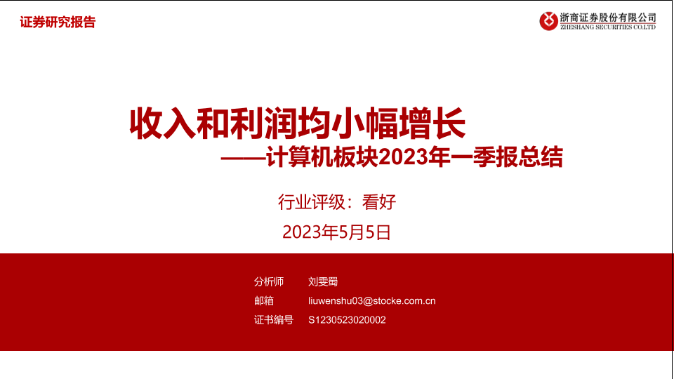 【浙商证券】【20230505】计算机行业板块2023年一季报总结:收入和利润均小幅增长-44页
