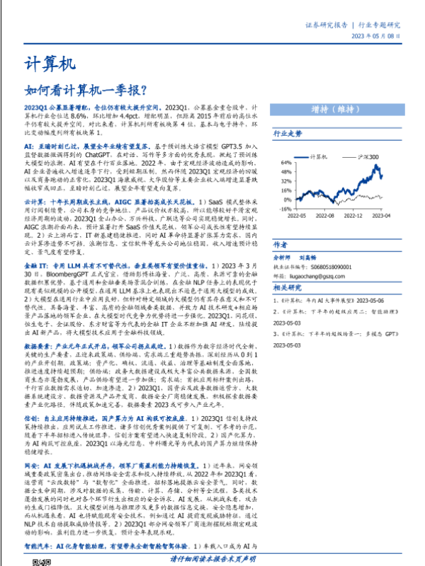 AI发展 一季报分析 云计算 计算机行业 金融IT