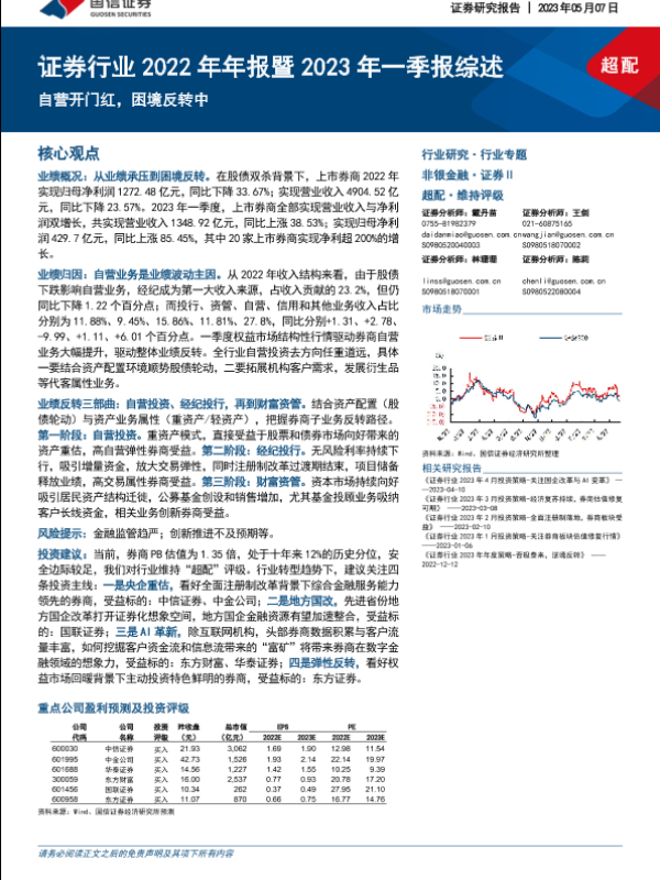 【国信证券】【20230507】证券行业2022年年报暨2023年一季报综述:自营开门红,困境反转中-29页