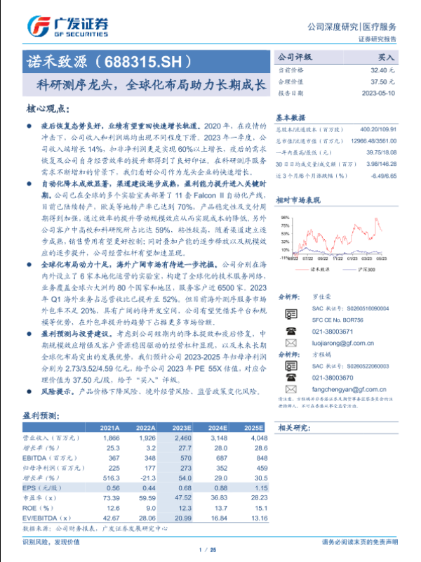【广发证券】【20230510】诺禾致源(688315)科研测序龙头,全球化布局助力长期成长-25页