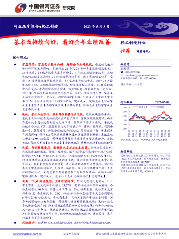 【银河证券】【20230508】轻工制造行业深度报告-基本面持续向好-看好全年业绩改善-25页