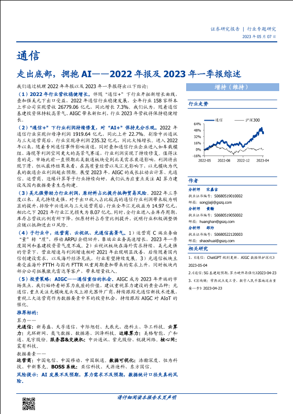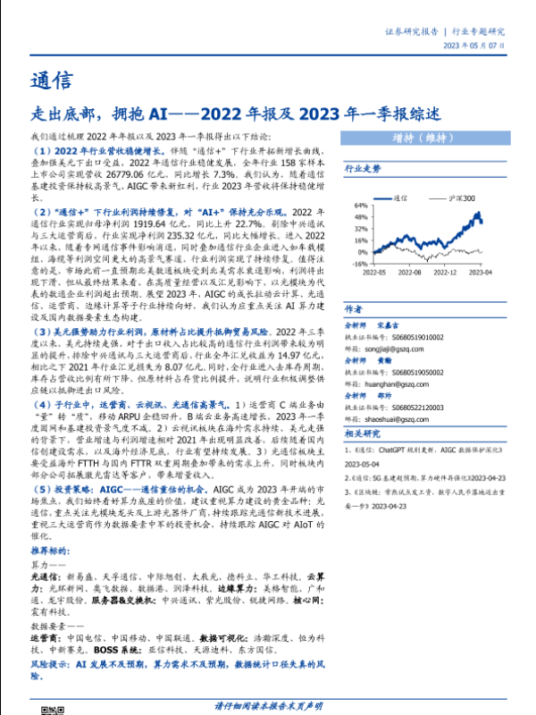 【国盛证券】【20230507】通信行业2022年报及2023年一季报综述:走出底部,拥抱AI-32页