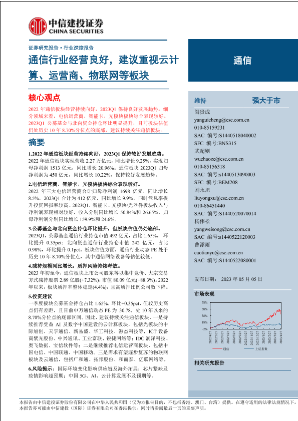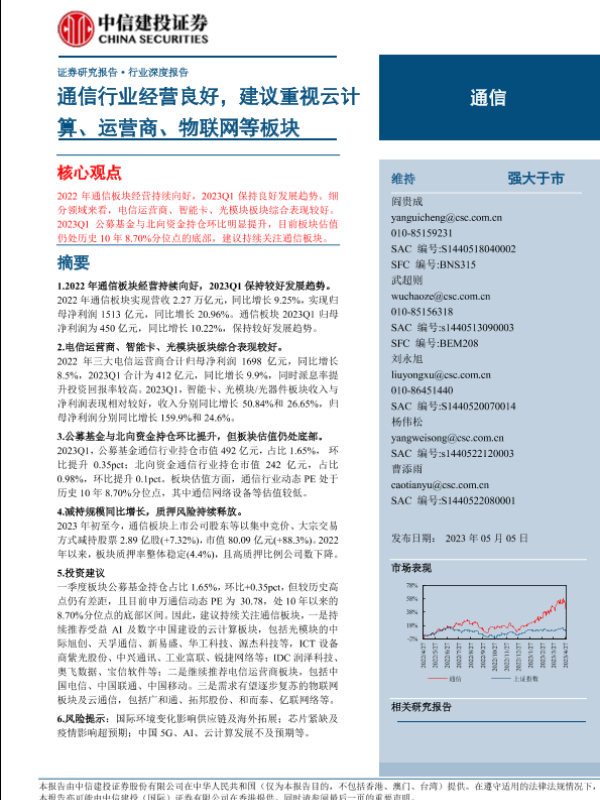 【中信建投证券】【20230505】通信行业:通信行业经营良好,建议重视云计算、运营商、物联网等板块-39页