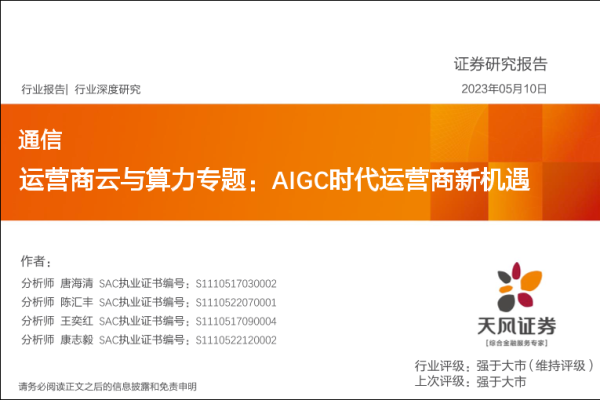 【天风证券】【20230510】通信行业深度研究:运营商云与算力专题:AIGC时代运营商新机遇-44页