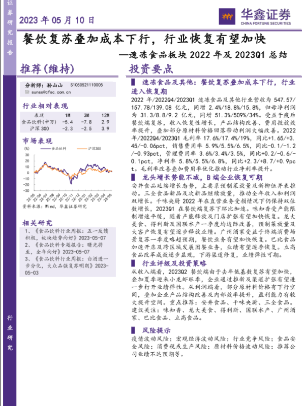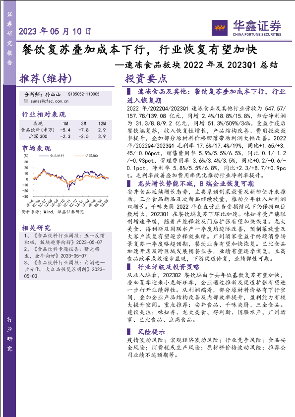 【华鑫证券】【20230510】速冻食品板块2022年及2023Q1总结:餐饮复苏叠加成本下行,行业恢复有望加快-19页