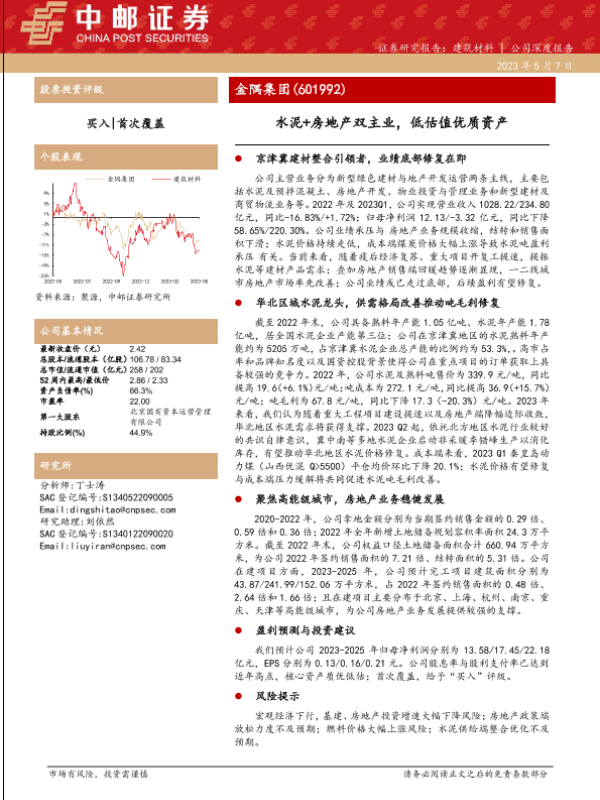 【中邮证券】【20230507】金隅集团-水泥+房地产双主业,低估值优质资产-34页