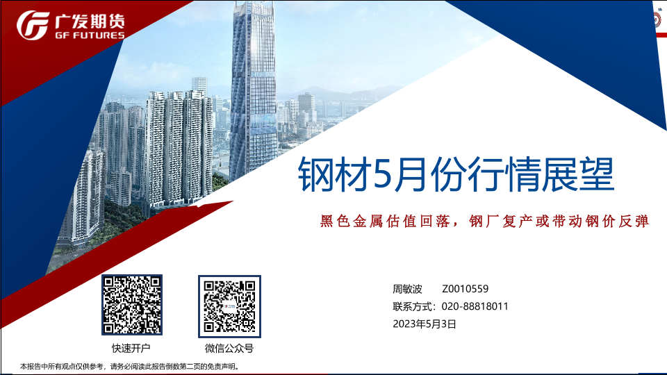 【广发期货】【20230503】钢材5月份行情展望:黑色金属估值回落,钢厂复产或带动钢价反弹-31页
