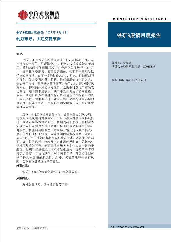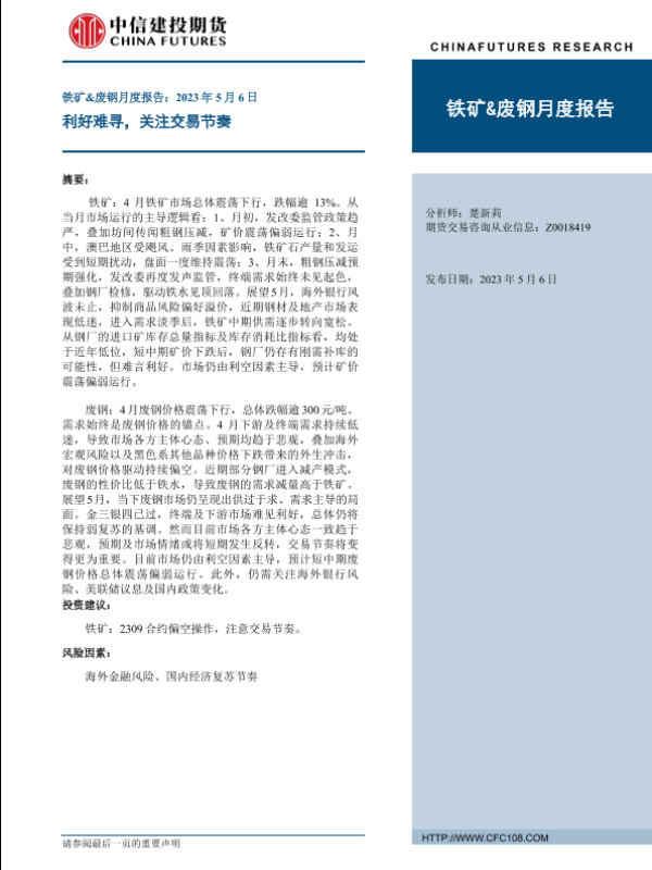 【中信建投期货】【20230506】铁矿&废钢月度报告:利好难寻,关注交易节奏-20页