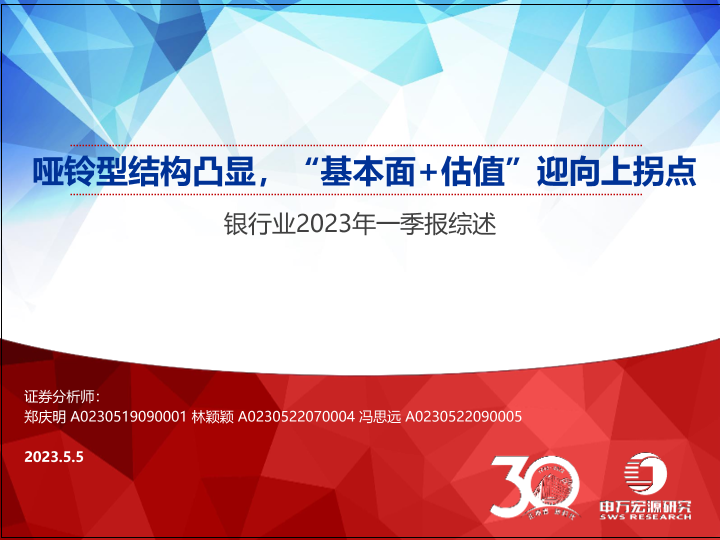 【申万宏源】【20230505】银行业2023年一季报综述:哑铃型结构凸显,“基本面+估值”迎向上拐点-39页