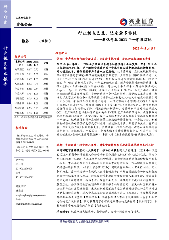 【兴业证券】【20230505】非银行业2023年一季报综述:行业拐点已至,坚定看多非银-34页