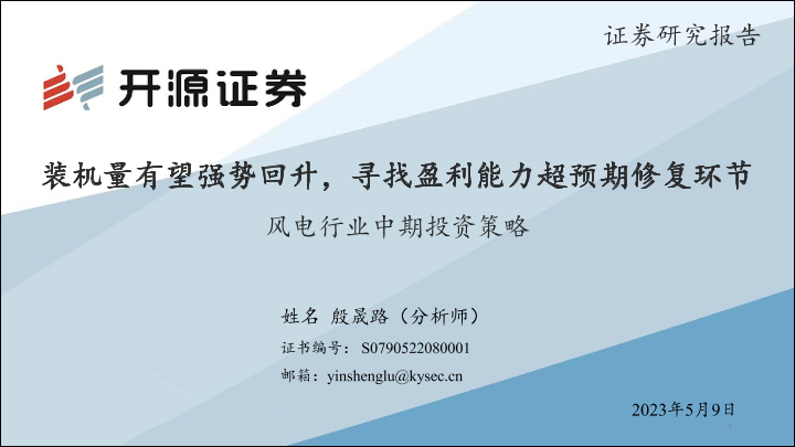 【开源证券】【20230509】风电行业中期投资策略:装机量有望强势回升,寻找盈利能力超预期修复环节-26页
