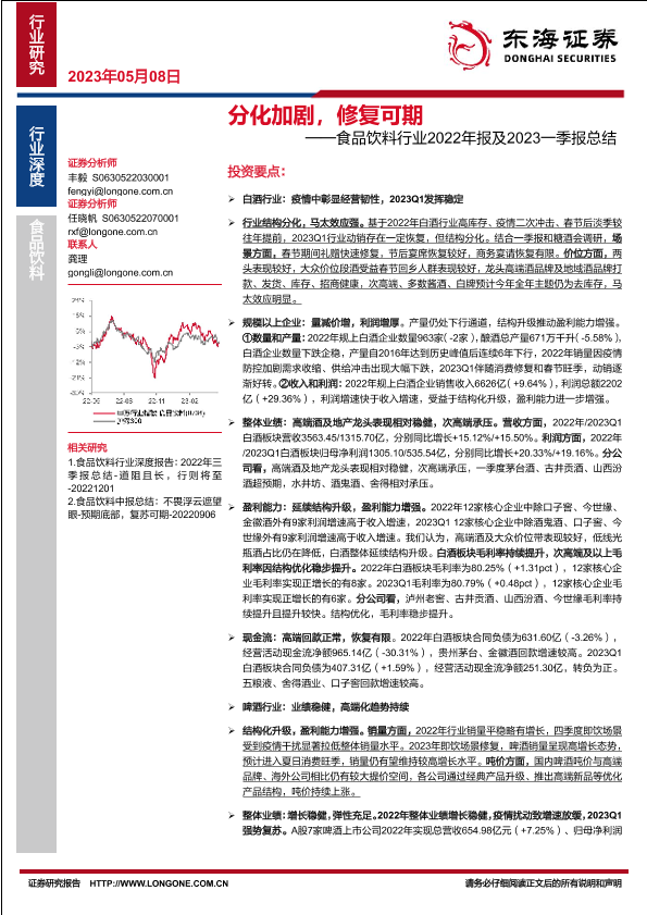 【东海证券】【20230508】食品饮料行业2022年报及2023一季报总结:分化加剧,修复可期-44页