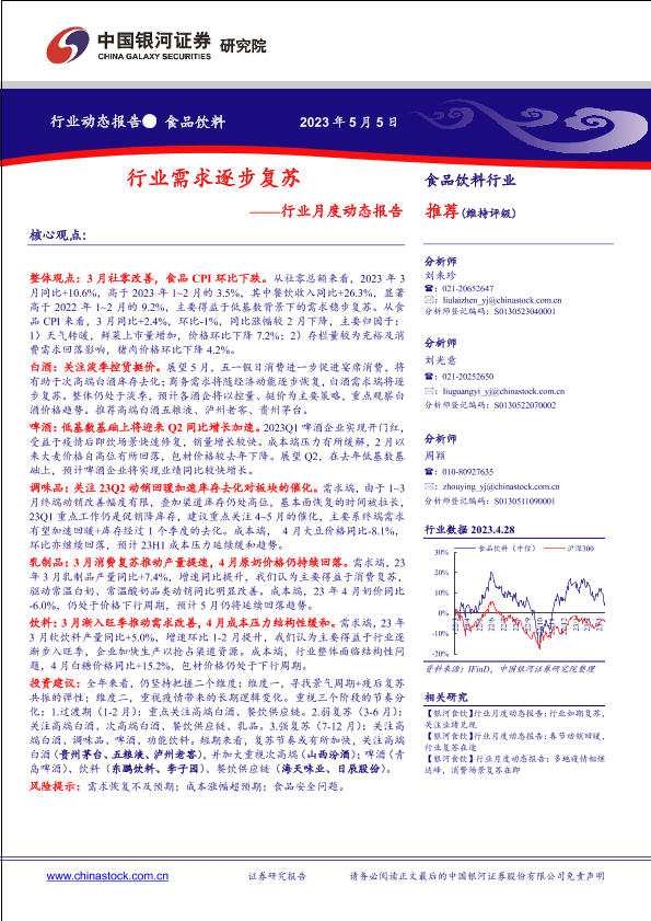 【银河证券】【20230505】食品饮料行业月度动态报告:行业需求逐步复苏-20页