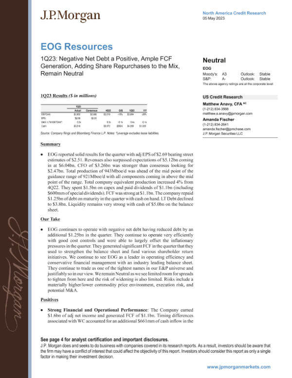 【J.P. Morgan】【20230505】JPMorgan Econ FI-EOG Resources 1Q23 Negative Net Debt a Positive, Ample FC-7页