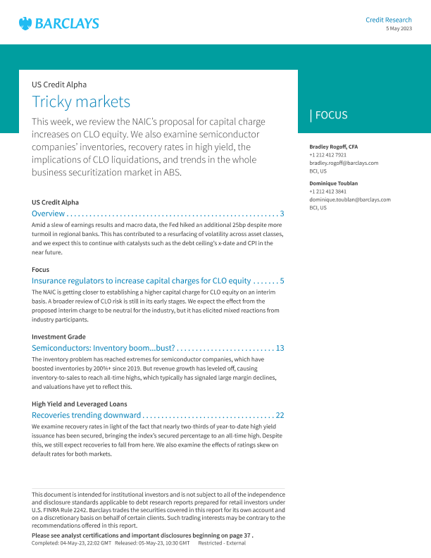 【Barclays】【20230505】US Credit Alpha Tricky markets-40页