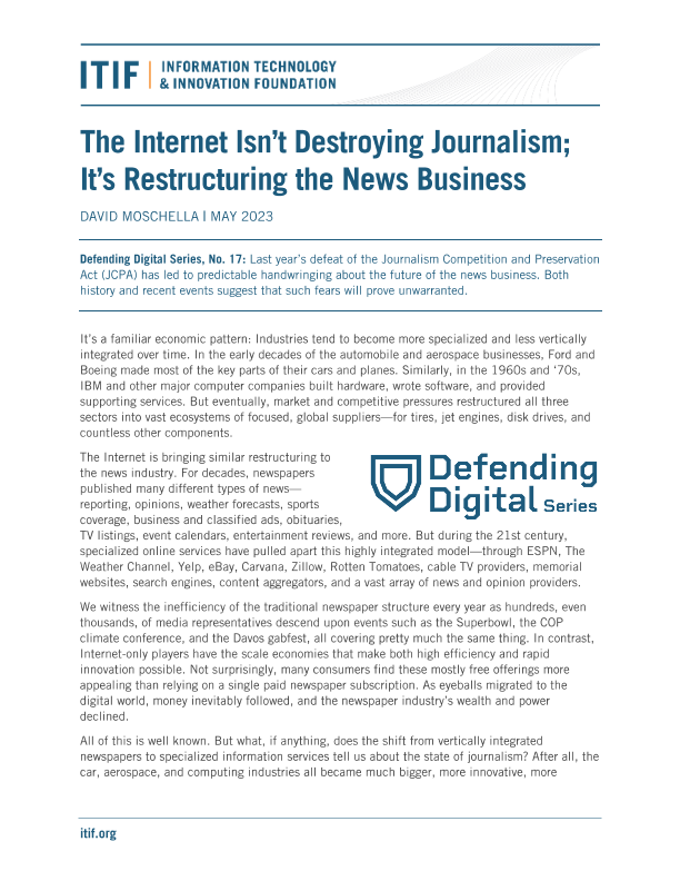 【Information Technology and Innovation Foundation (ITIF)】【202305】互联网并没有摧毁新闻业;它正在重组新闻业务-6页