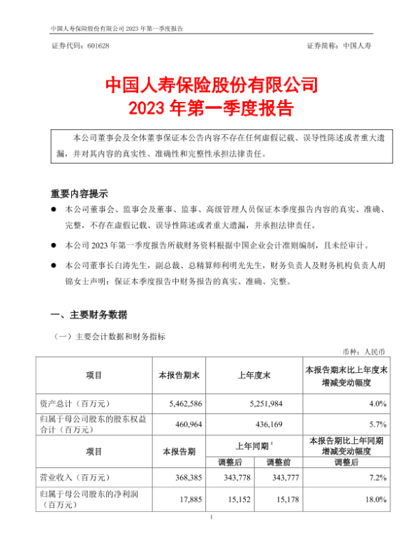 【中国人寿保险股份有限公司】【20230331】中国人寿2023年第一季度报告-16页