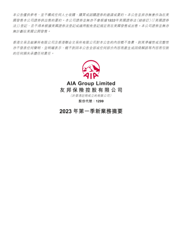 【友邦保险控股有限公司】【20230427】友邦保险2023年第一季新业务摘要-9页
