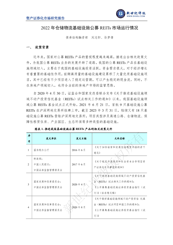 【新世纪评级】【20230331】2022年仓储物流基础设施公募REITs市场运行情况-16页