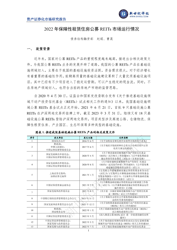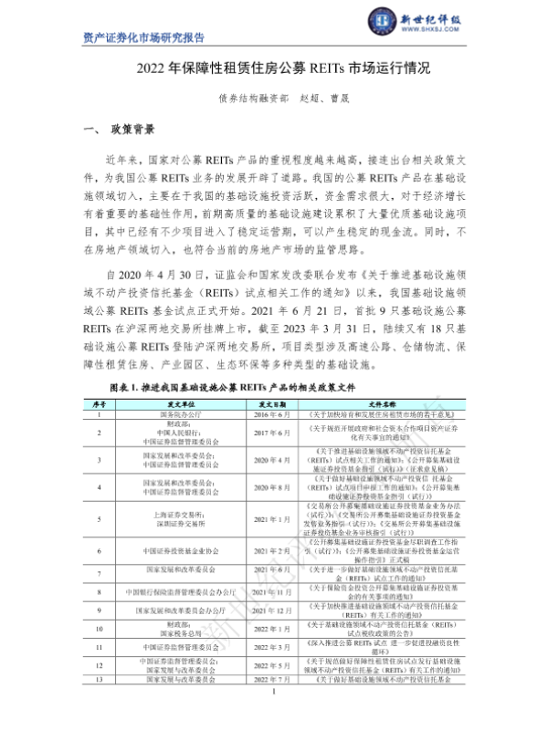 REITs REITS 保障性租赁住房 市场运行 政策分析