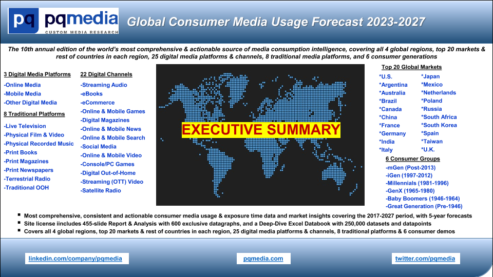 【PQ Media】【20230519】2023-2027年全球媒体消费者使用预测-44页