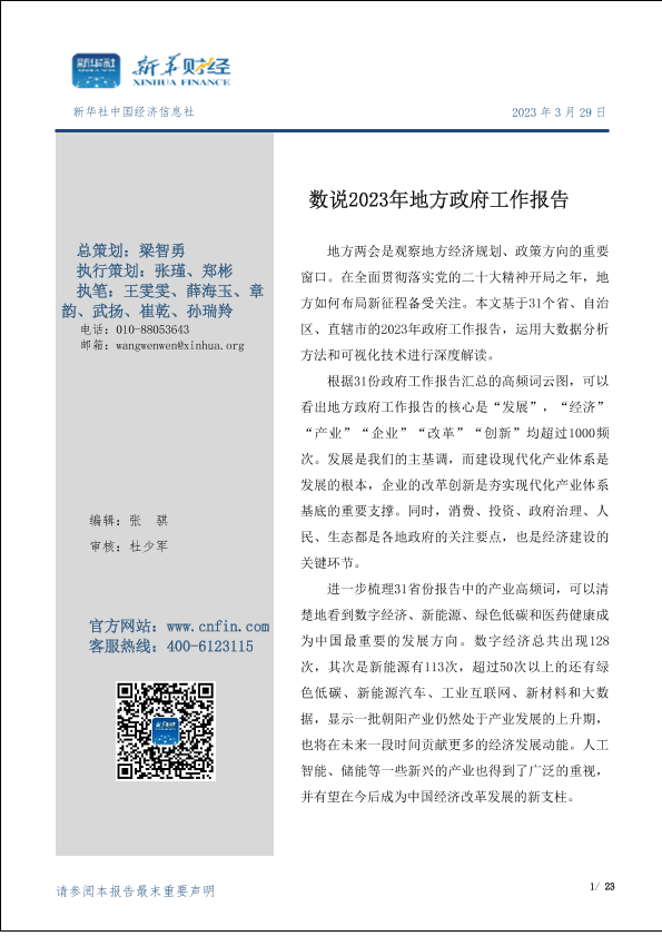 【新华社中国经济信息社】【20230329】数说2023年地方政府工作报告-23页