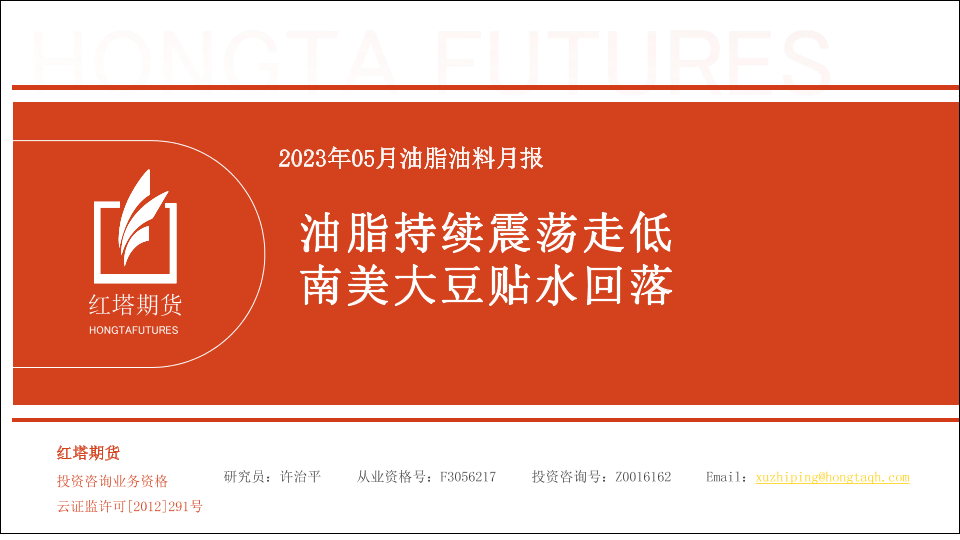 【红塔期货】【20230515】2023年05月油脂油料月报:油脂持续震荡走低,南美大豆贴水回落-16页