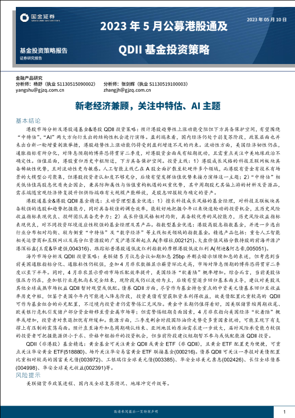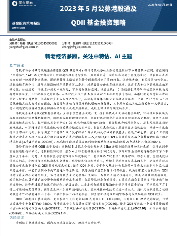 【国金证券】【20230510】2023年5月公募港股通及QDII基金投资策略:新老经济兼顾,关注中特估、AI主题-20页