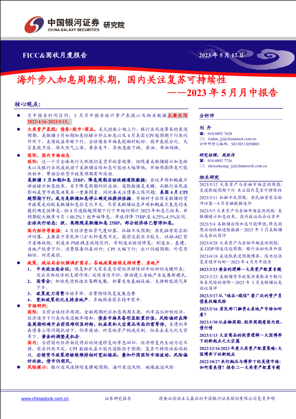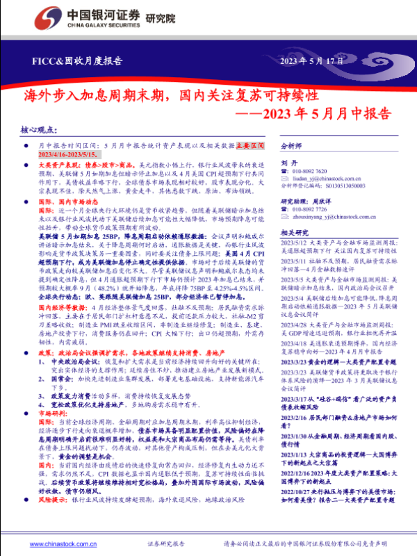 【银河证券】【20230517】2023年5月月中报告:海外步入加息周期末期,国内关注复苏可持续性-25页