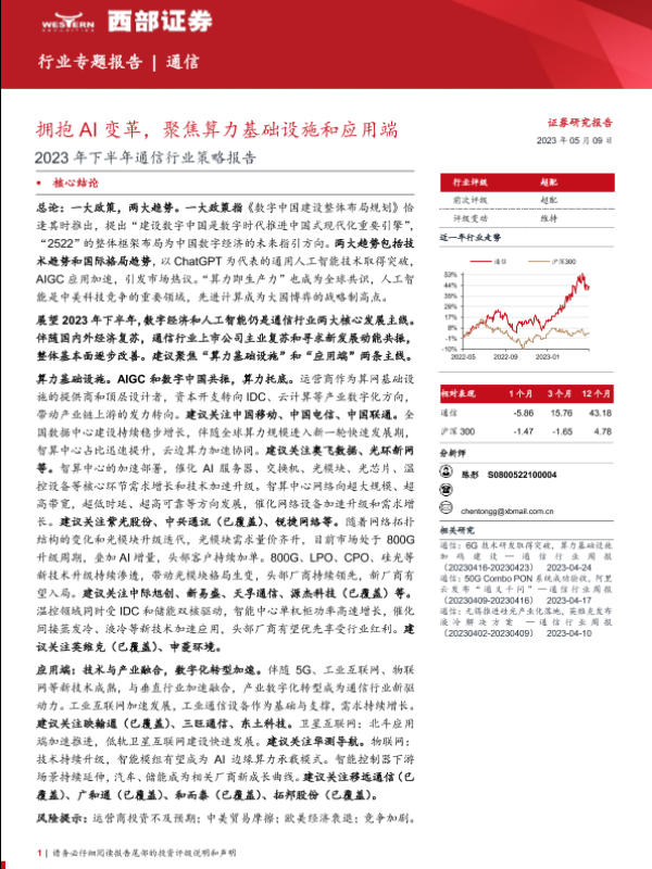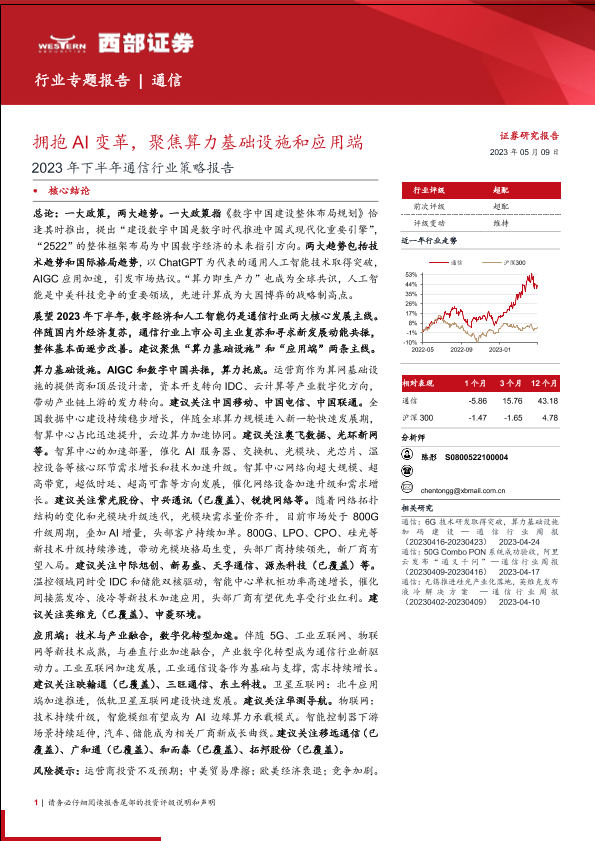 【西部证券】【20230509】2023年下半年通信行业策略报告:拥抱AI变革,聚焦算力基础设施和应用端-52页