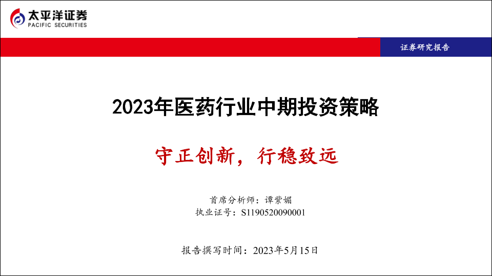 【太平洋证券】【20230515】2023年医药行业中期投资策略:守正创新,行稳致远-101页