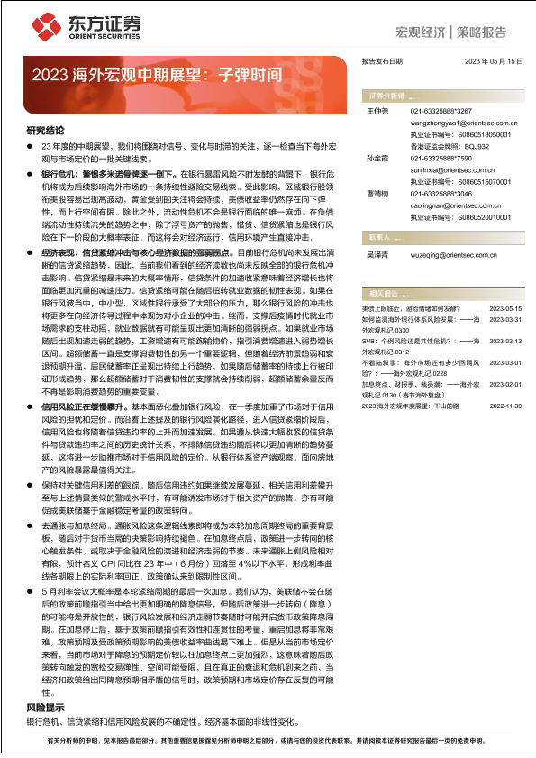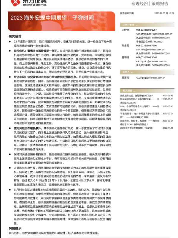 【东方证券】【20230515】2023海外宏观中期展望:子弹时间-19页