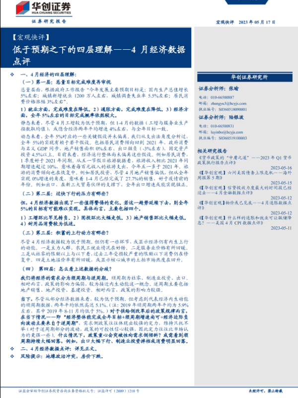 【华创证券】【20230517】4月经济数据点评:低于预期之下的四层理解-16页
