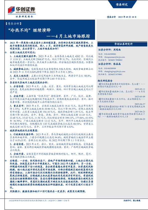 【华创证券】【20230518】4月土地市场跟踪:“冷热不均”继续演绎-16页