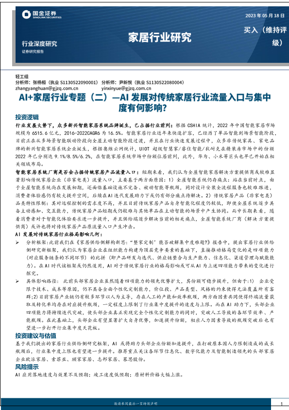 【国金证券】【20230518】AI+家居行业专题(二):AI发展对传统家居行业流量入口与集中度有何影响?-23页