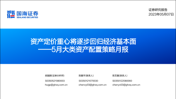【国海证券】【20230507】5月大类资产配置策略月报:资产定价重心将逐步回归经济基本面-37页
