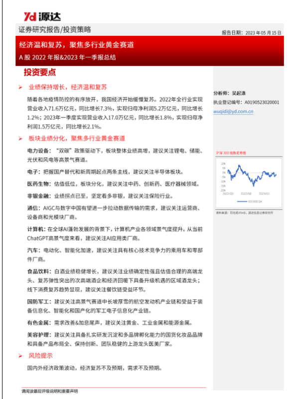 【源达信息】【20230515】A股2022年报&2023年一季报总结:经济温和复苏,聚焦多行业黄金赛道-19页