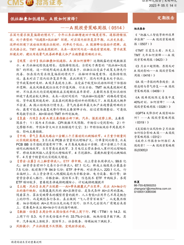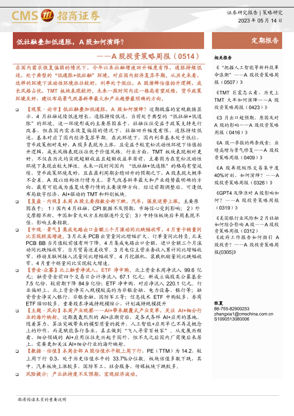 【海通证券】【20230514】A股投资策略周报:低社融叠加低通胀,A股如何演绎?-28页