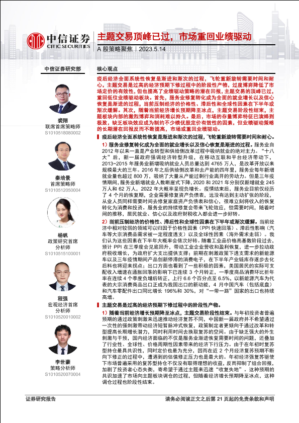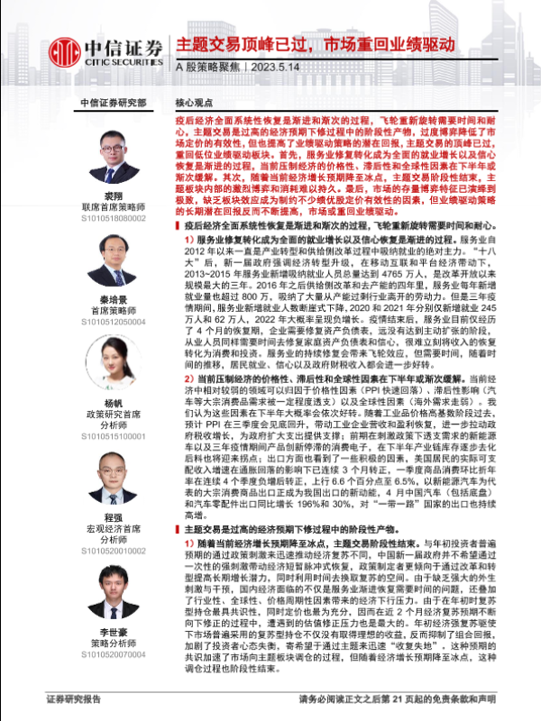 【中信证券】【20230514】A股策略聚焦:主题交易顶峰已过,市场重回业绩驱动-22页
