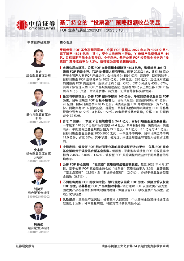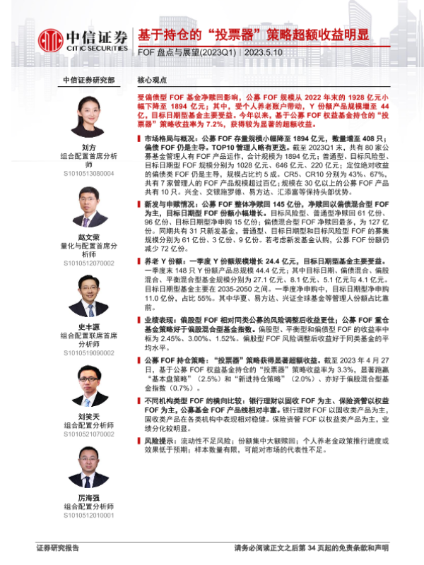 【中信证券】【20230510】FOF盘点与展望(2023Q1):基于持仓的“投票器”策略超额收益明显-38页